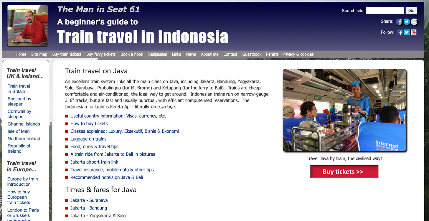 Af uransagelige årsager er det faktisk også hjemmesiden, The Man in Seat 61, der inspirerede til, at togrejse i Java er totalt bomben. Som så meget andet, kan jeg ikke huske hvorfor jeg faldt det, men uanset hvad er hans hjemmeside en vild informations-overload, hvis man gerne vil rejse med tog. Ikke kun i Java men i hele verden. Tjek grafikken: