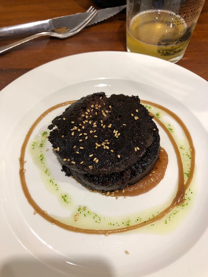 (BESØGT 2023) Man skal jo være til det, men jeg tør næsten påstå, at blodpølsen på La Cuchara de San Telmo, som ved gud ikke er nogen hemmelighed i San Sebastian, kan omvende selv den værste tvivler på blodpølsens storhed. Jeg må være svar skyldig på, hvad retten indeholder (andet end blod, red.), men kør den ned med en skummende cider hældt op fra god højde, og så lover jeg, at du er glad i mindst et kvarter efterfølgende.