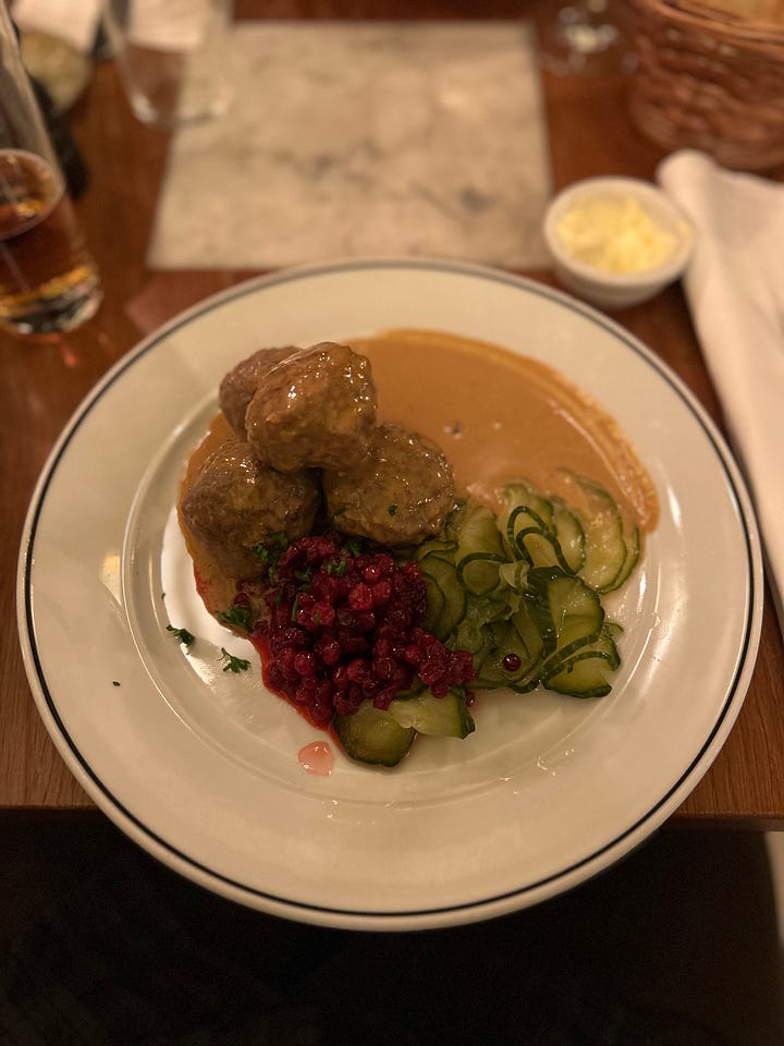 (BESØGT 2024) Sjældent har jeg glædet mig så meget til en middag, som da min kæreste og jeg var i Stockholm mellem jul og nytår og havde bord på Pelikan. For hvad er bedre end köttbullar med grædesovs? Jo, så skulle de da lige være nogle af Stockholms mest legendariske köttbullar med grædesovs i de sejeste restaurationslokaler i byen. Nu gad jeg ikke lige læse hele Pelikans historie inde på deres hjemmeside, for den er dæleme lang, men restauranten har boet i Södermalms mest højloftede lokaler i over 110 år, mens den første version af Pelikan åbnede i 1664. Jeg synes det er fantastisk med de store gamle steder. Jeg vil gerne gå på pension i Pelikans lokaler.